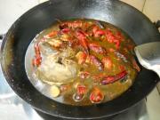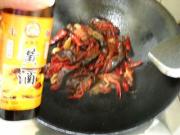 倒入龙虾,炒匀;烹入料酒。