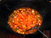 待材料熟透之后,加入木瓜粒炒匀。