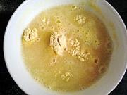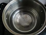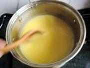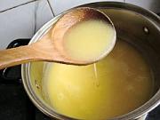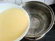 锅中水烧开再倒入调好的玉米粉水,要慢慢边倒边搅拌。