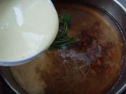 盖盖煮约15分钟,把炸好的油豆皮倒入锅内,用勺搅动。