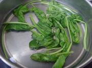 菠菜洗净,入沸水焯烫去除草酸,捞出攥干水分。