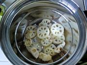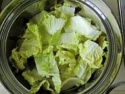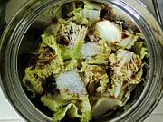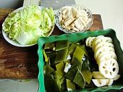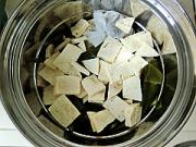 大白菜切大片,莲藕切厚片,脆豆腐也切大片。
