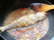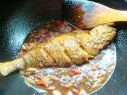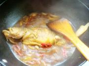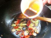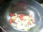锅里留底油,放入葱、姜、蒜、红椒煸炒出香味。