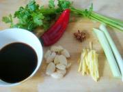 葱姜蒜切碎,料酒、白糖、醋、酱油、盐一起调匀。