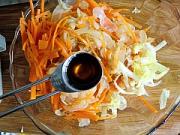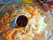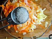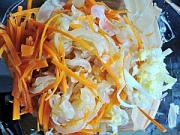 大白菜洗净切丝,加少许盐腌拌片刻。