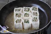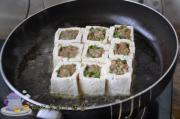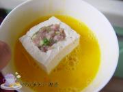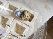 将馅料放入挖好的豆腐盒中。