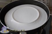 将汤汁首先倒出,将盘子放入锅内。快速将锅子翻转,将豆腐盒倒扣在盘子内即可。