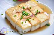 将汤汁浇到豆腐上面,撒小葱末即可。