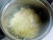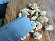炸至变白浮起,捞出轻轻把粘连的拍松开。