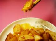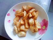 中小火炸制,用筷子不断拨动山药块,炸至金黄色时捞出。