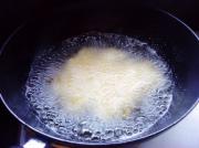 熬糖汁。锅中留点底油,约5成热时倒入白糖,保持小火。