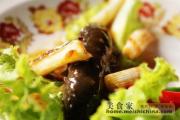 锅里放蚝油,海参下锅入味,加入煎好的大葱,加一点水淀粉,成功。