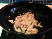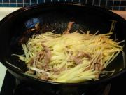 锅中留底油,放入肉丝翻炒至变色。