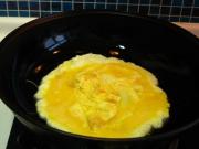 热锅下油,先把鸡蛋滑散盛出备用。