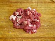 猪肉切成丝。