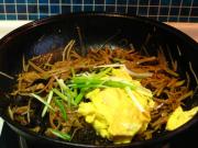 最后放入鸡蛋和葱丝翻炒30秒出锅即可。