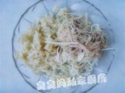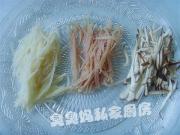 火腿丝、冬笋丝、香菇丝用沸水汆透。