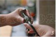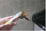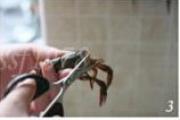 用剪刀从头部的壳开始一直剪到尾部,在最末端留一小截,不要完全剪断。