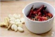 大蒜剥皮,生姜切片,干尖椒花椒洗净。