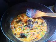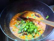 放入木耳翻炒、水淀粉翻炒,放入香菜末、胡椒粉。
