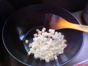 锅里放油,放入花椒煸炒出香味。把花椒过滤出来,留下花椒油备用。
