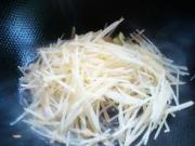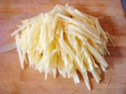 再切成细丝,放到凉水里浸泡。