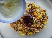 馅料中加入蚝油、生抽、盐、鸡精、食用油、葱姜水搅拌均匀。