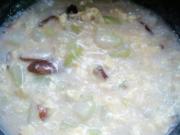 把奶汤冬瓜盛入碗中,再把泡发好的枸杞撒到上边。即可享用。
