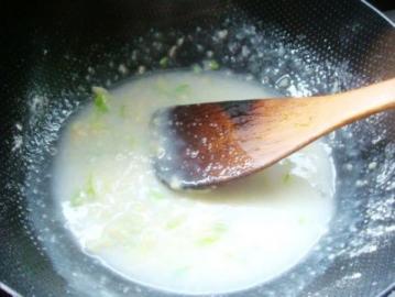 锅里放油,放入面粉煸炒。放入葱、姜加水。