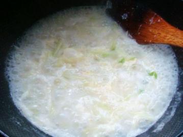 倒入锅中,放盐、味精、香油、香菜调味即可。