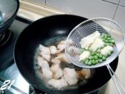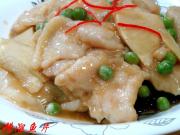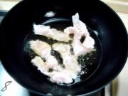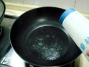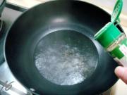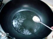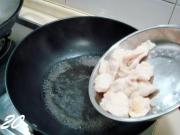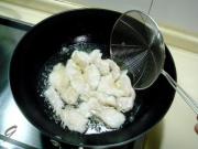炒勺上火烧热,注入适量烹调油,油温2-3成热时便可放入鱼片,油温切不可过高,以鱼片下锅后用手晃动炒勺,鱼片可以在油中滑动不抓锅底为最好,否则油温便高了。