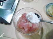 把蛋清抓匀后,舀一汤匙大约10克左右的玉米淀粉放入鱼片里。