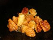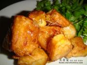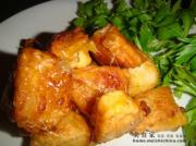 下炸好的苹果快速翻炒(让苹果都沾上糖浆)。