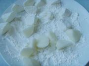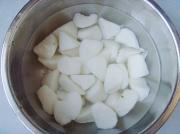 山药去皮切滚刀块。(最好带一次性手套,防止粘液刺激皮肤过敏)。