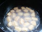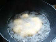 锅里放油,六成热放入苹果炸制。