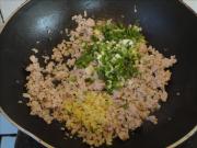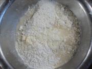 把溶好的酵母粉倒入面粉中,再加入少量的白糖和温水。
