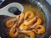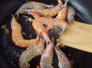 倒入虾煎炒至色红,出虾油。