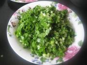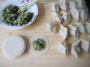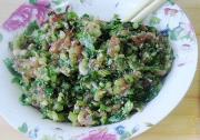 放入芹菜搅拌成饺子馅。