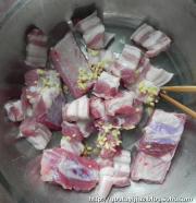 切好的肉用少许料酒,盐,姜末腌制20分钟。