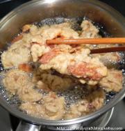 肉全部下锅后,改小火慢慢炸,其间要经常翻动,避免受热不均,有的炸糊