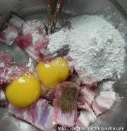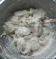 彻底搅匀调成糊,稍微调干一点。注:我喜欢吃上面一层厚厚炸过的淀粉,特别香 所以淀粉我相对放的多!