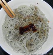 粉条放入少许酱油,蚝油拌匀。