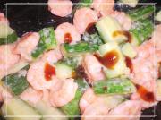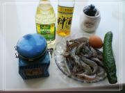 黄瓜一根;鲜虾;淀粉一勺;料酒两勺;耗油一勺;