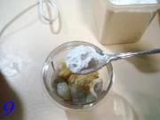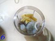 把虾肉去掉虾肠洗干净放入料理机中,里面再放入少许葱、姜、盐。