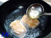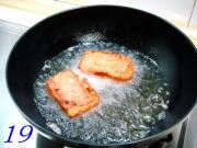 炸制至鸭方的皮面焦脆,然后翻面再继续煎炸。