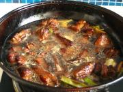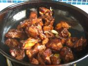 锅中下宽油,放入腌制好的排骨炸至金黄色。
