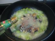放入姜片,料酒,大火煮至蛤蜊壳开。