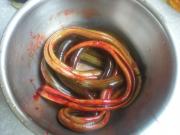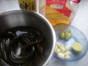 用手抓捏去除黄鳝表面的粘液,冲洗干净。