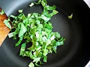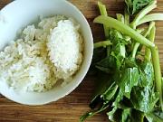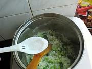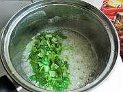 泡饭锅已经煮开加入青菜拌均匀。