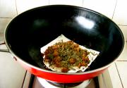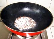 将花椒与盐一起下砂锅,炒到盐色发黄。